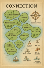 Inspired by its use within our then consultant, Dr Claire Purcell’s previous context, we sought to integrate NVR into the ward, family therapy and parent group interventions.